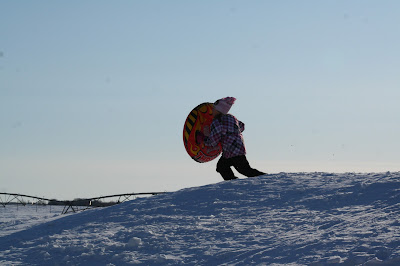 After the last snow fall we ended up with a fresh 6-8 inches so the snow hill got even bigger and the sledding that much better...too bad these two have a hard time staying ON the sleds! |